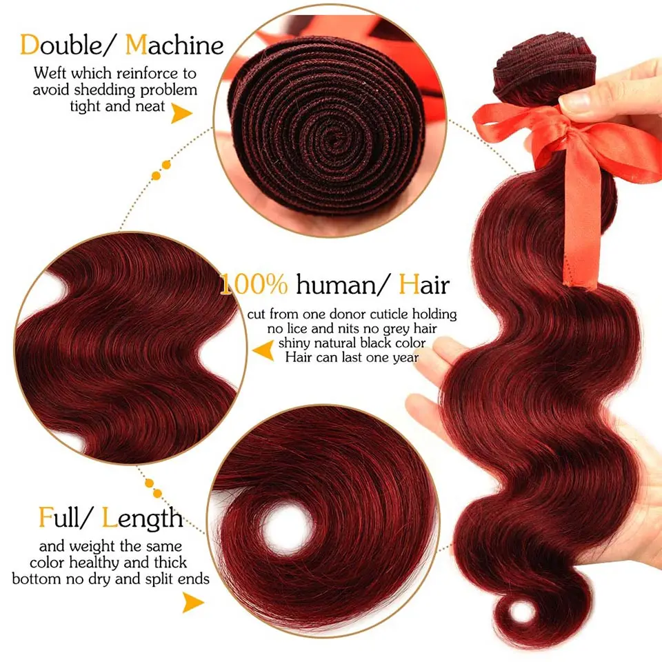 . (Zniżka 54%) Skup Pinshair 99J włosy czerwone burgundowe zestawy z zamknięciem brazylijski ciało fala ludzkie włosy splot wiązki z zamknięciem Non Remy nie plątanina Najtaniej Cena.
