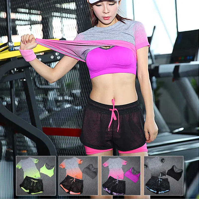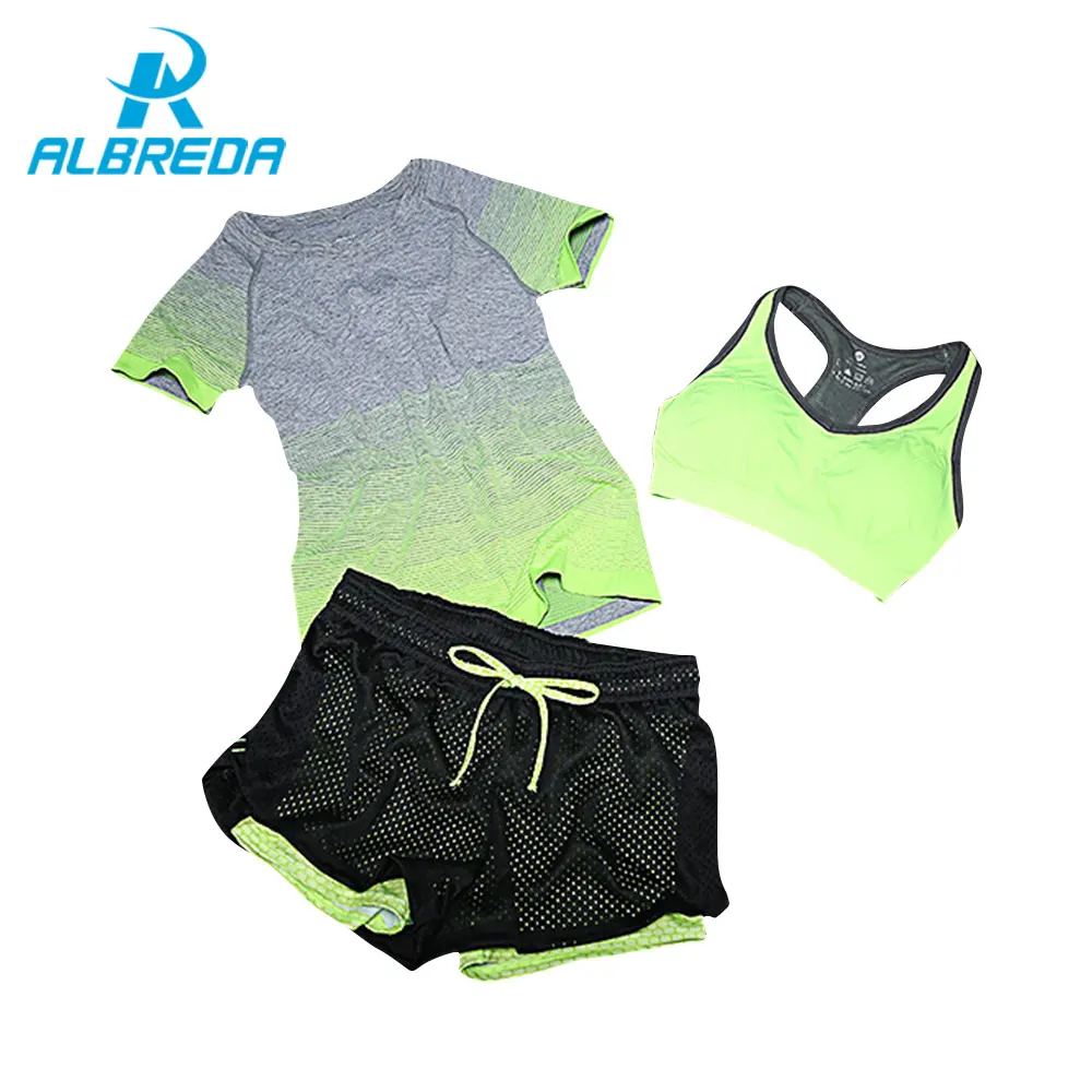 Special Offer ALBREDA 2018 nowych kobiet strój sportowy do jogi biustonosz zestaw 3 sztuka kobiet z krótkim rękawem letnia odzież sportowa bieganie trening fitness odzież Discount 55% Today!