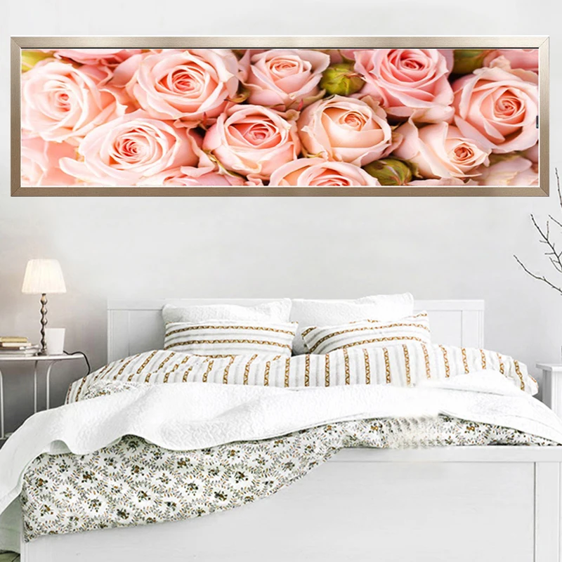 Special Offer Pełna diamentowa malowanie różowy róża wzór malarstwo rhinestone ręcznie mozaika kwiaty Diy diament haft dekoracyjne 128x48cm Discount 56% Today!