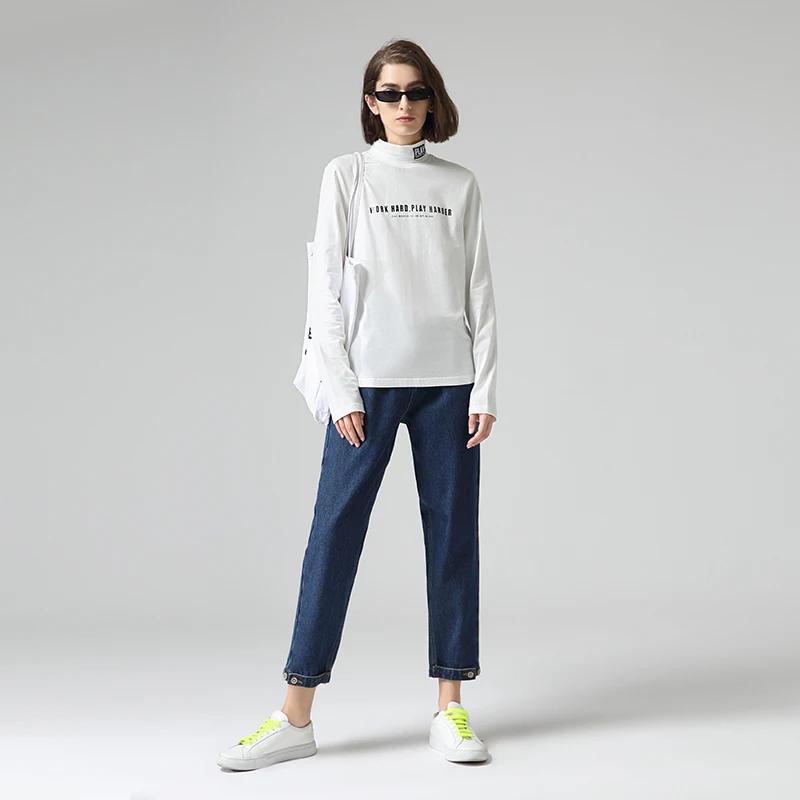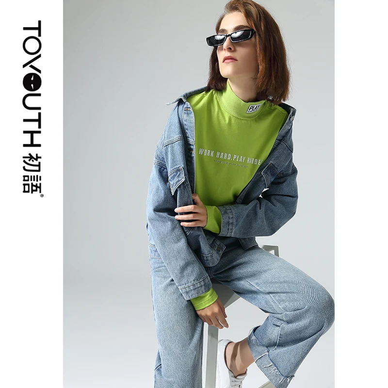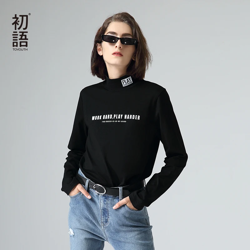 Special Offer Toyouth stojak kołnierz koszulki z długim rękawem kobiety nadrukowane litery jesień T Shirt Slim cienki najniższy koszulkę Discount 57% Today!