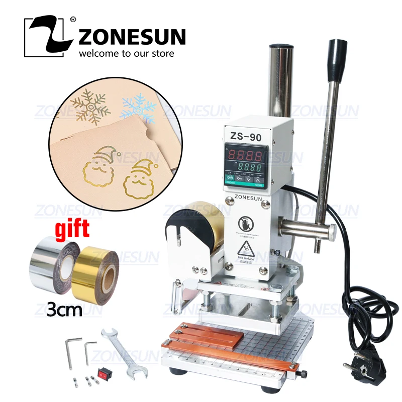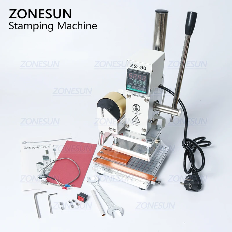 . (Zniżka 11%) Skup Tanie ZONESUN ZS90 instrukcja cyfrowa karta pcv książka skórzany papier drewno własne logo tłoczenie maszyna stemplująca gorącą folią prasa ciepła Cena.
