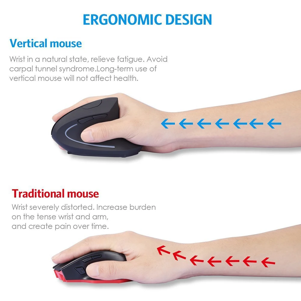 . (Zniżka 22%) Tanie 2.4G 5D komputer biurowy Bluetooth do laptopa bezprzewodowy ergonomiczny wygodny USB do ładowania PC pionowa mysz cicha gra optyczna Ceny.