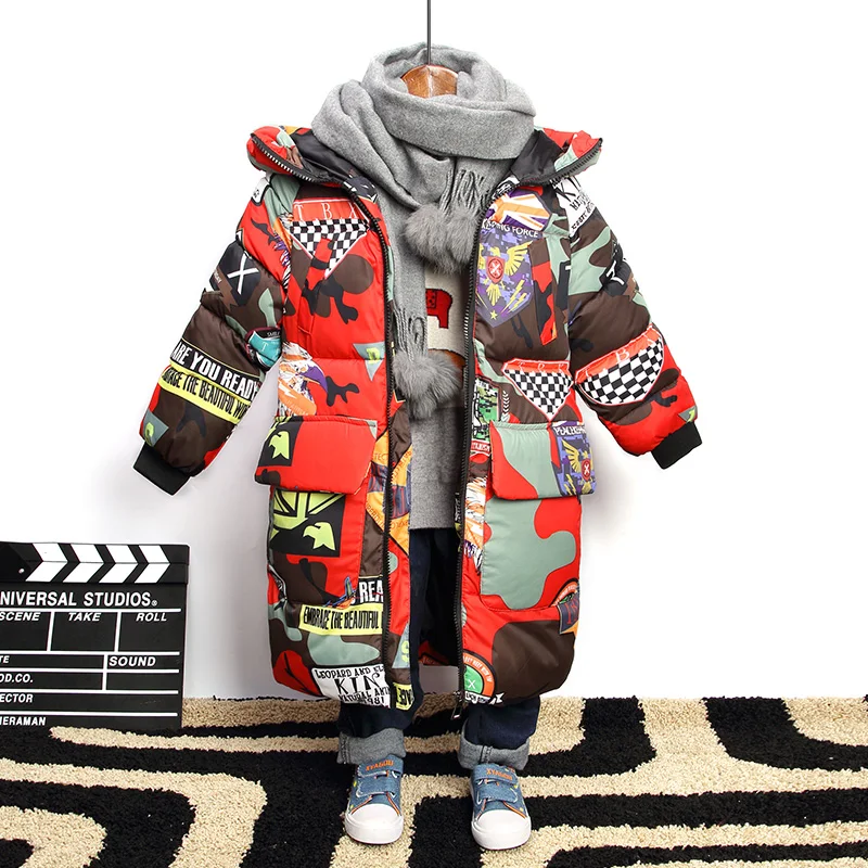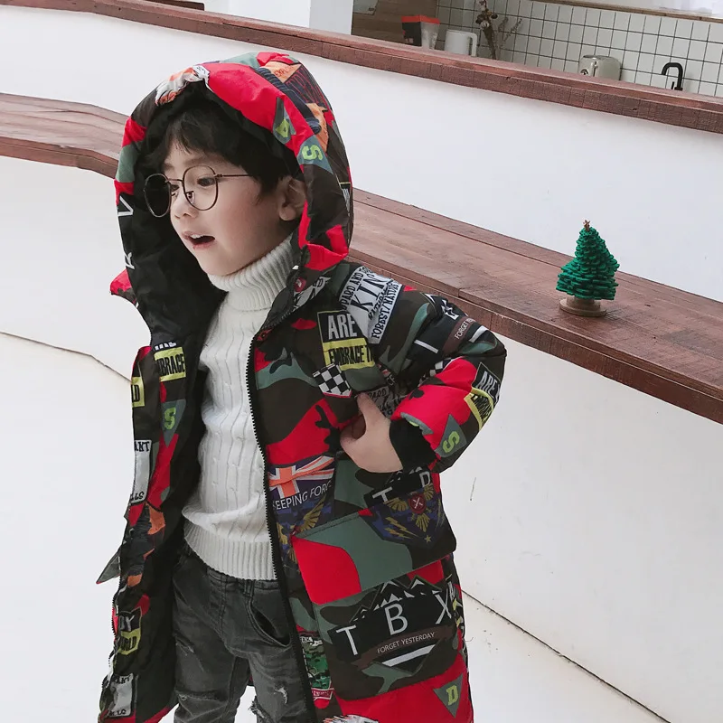Special Offer Kurtka zimowa dziewczyny gruby ciepły śnieg nosić bawełniane długie znosić dla dzieci na co dzień z kapturem druku koreański chłopcy 7 płaszcz dla dzieci jesień Discount 30% Today!