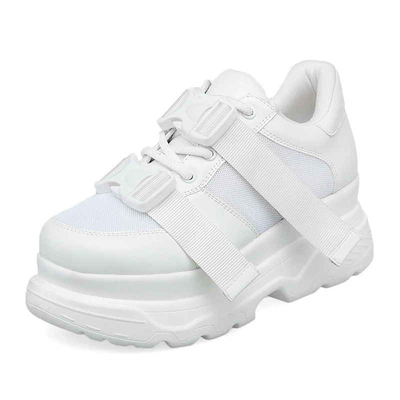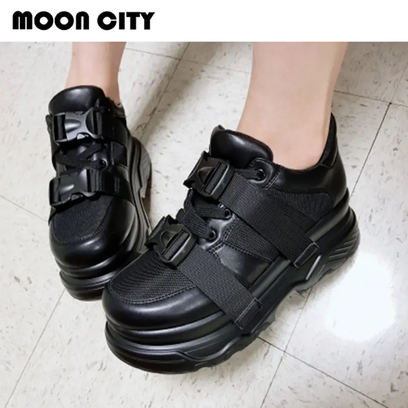 Special Offer Platforma damska Chunky Sneakers 2019 modna siatka klamra kobiece buty z grubą podeszwą damskie buty wulkanizowane damskie Discount 35% Today!