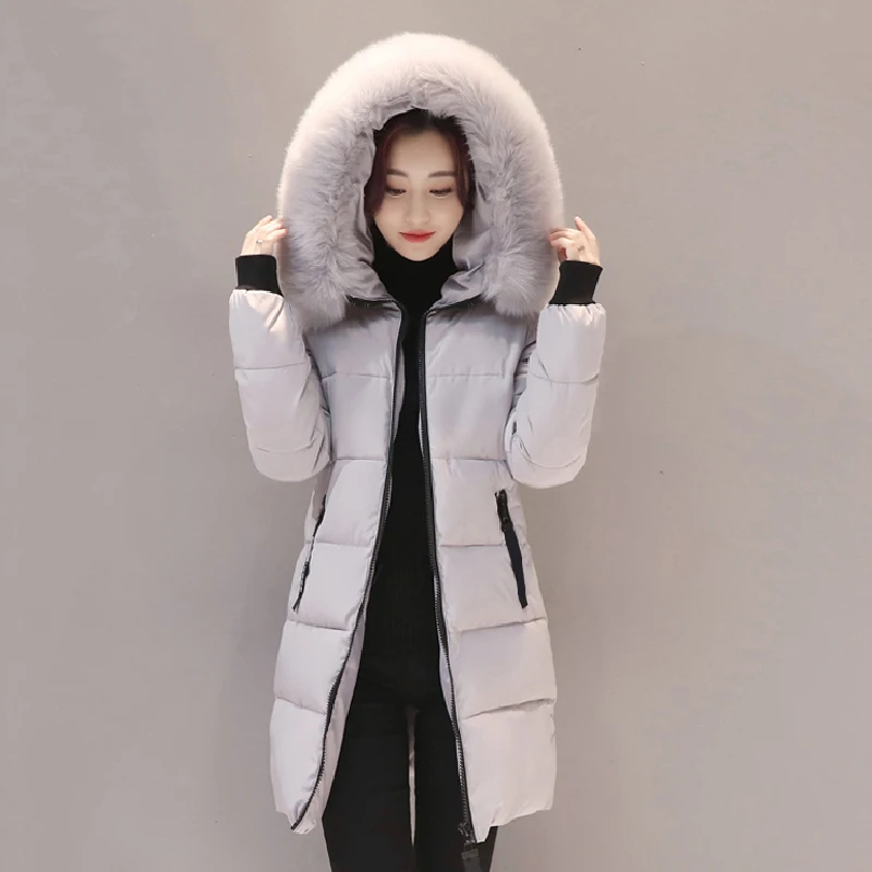. (Zniżka 36%) Skup 2019 nowy kobiety moda zima kurtka z futrzanym kołnierzem ciepły z kapturem kobiet damski płaszcz zimowy długa parka znosić Camperas Najtaniej Cena.