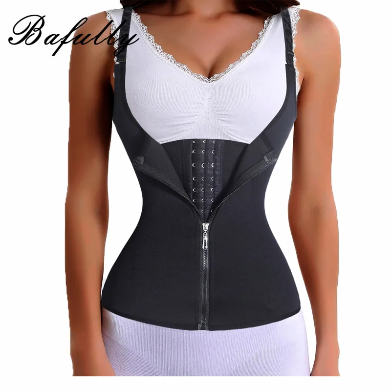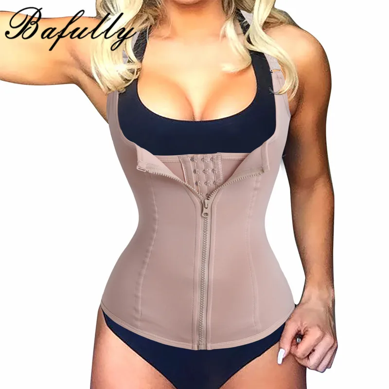 . (Zniżka 41%) Tanie Bafully Body kobiety odchudzanie Zipper talia trener Cinta Modeladora ciała Shaper brzuch Cincher zbiornik naprawczych Shapewear topy Cena.