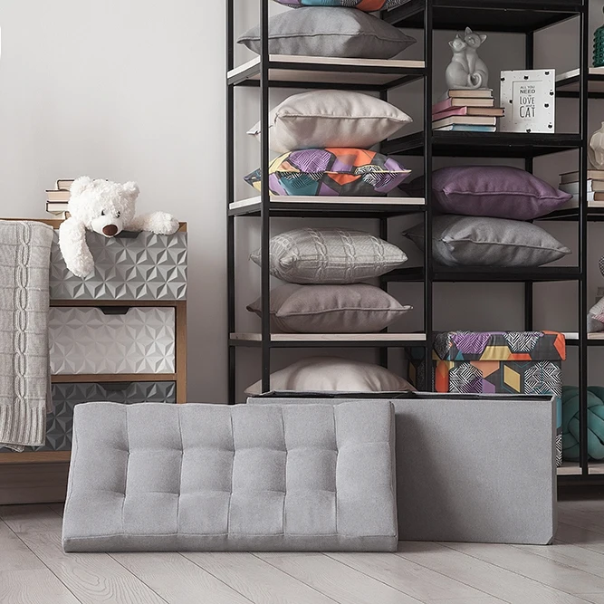 Special Offer Delhi Poof składane duże Delicatex szary wielofunkcyjny schowek pudełko z pokrywką Organizer wygodne otomana dzieci podnóżek tkanina małe krzesło salon meble przedpokoju Tabouret puf przechowywanie zabawek z pokrywką przestrzeń Discount 41% Today!