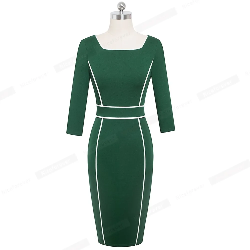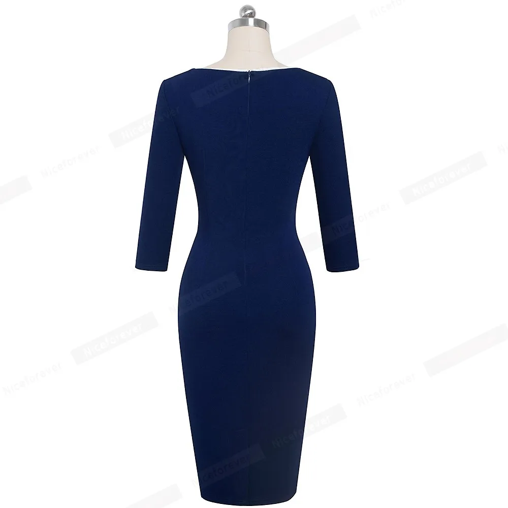 Special Offer Nicea na zawsze w stylu Vintage elegancki Patchwork biuro vestidos biznes Party Bodycon kobiety sukienka ołówkowa B551 Discount 44% Today!