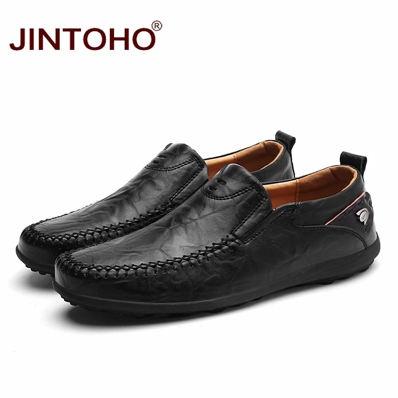 Special Offer JINTOHO 2019 męskie skórzane buty marki męskie modne buty męskie skórzane buty oryginalne skórzane męskie mokasyny żeglarskie Discount 56% Today!