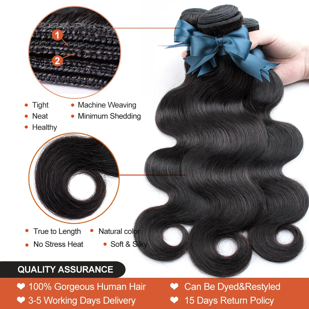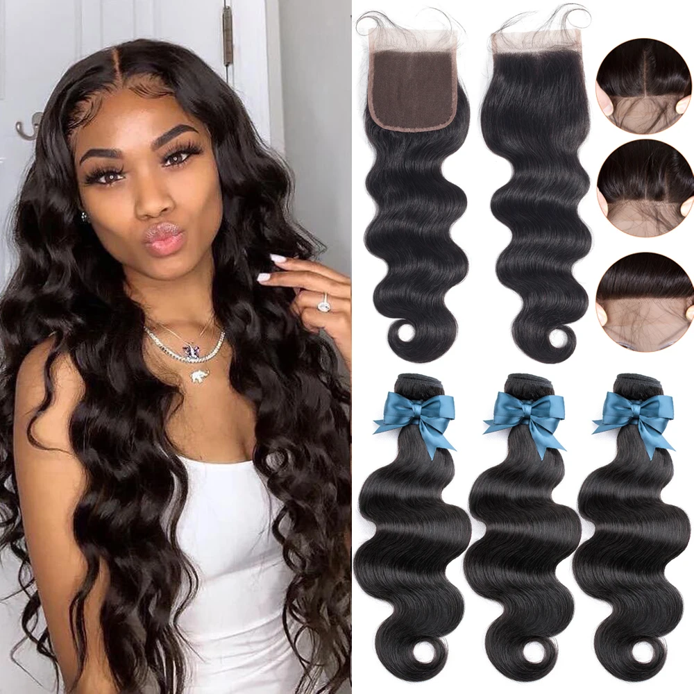 Special Offer BEAUDIVA brazylijski włosy ciało fala 3 zestawy z zamknięciem wiązki ludzkich włosów z zamknięciem zamknięcie koronki Remy ludzkie do przedłużania włosów Discount 58% Today!