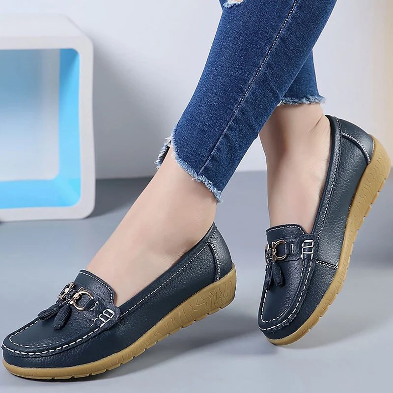 Special Offer Boat shoes women fashion sneakers genuine leather shoes tassel fringe casual shoes round toe plus size 35 44 ladies flat Discount 60% Today!