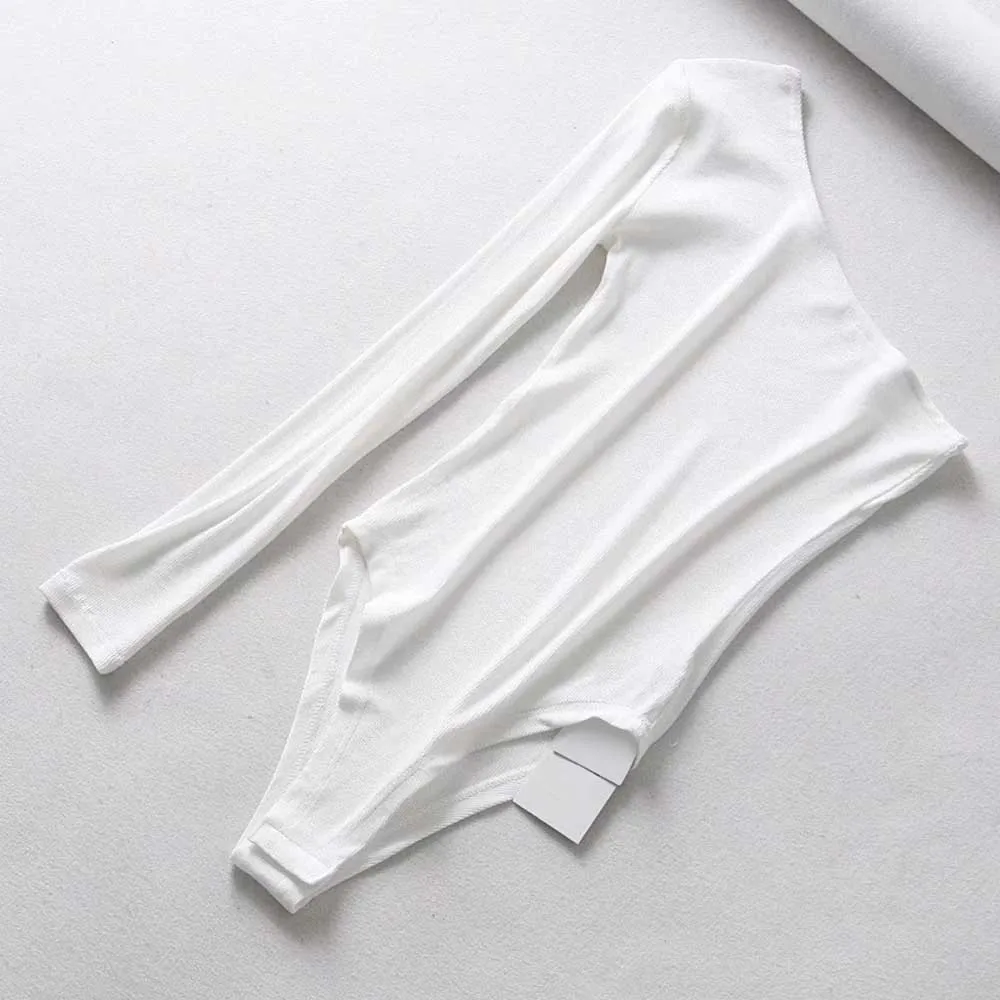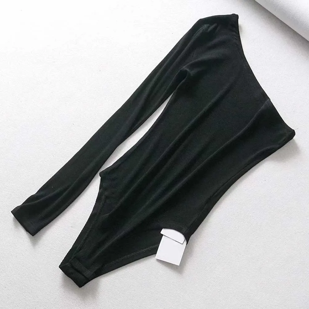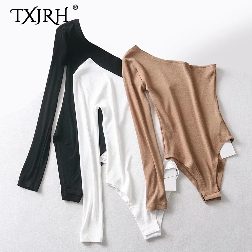 Special Offer TXJRH Sexy jedno ramię ukośny kołnierzyk ciała syjamski z długim rękawem szczupły obcisły pajacyki Body Slim podkoszulek Playsuits 3 kolor Discount 7% Today!