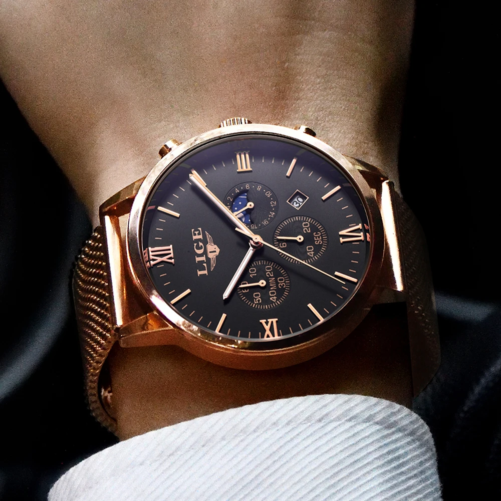 Special Offer LIGE męskie zegarki Top luksusowa marka biznes złoty zegarek kwarcowy mężczyźni swobodna siateczka ze stali wodoodporny zegarek sportowy Relogio Masculino + Box Discount 82% Today!