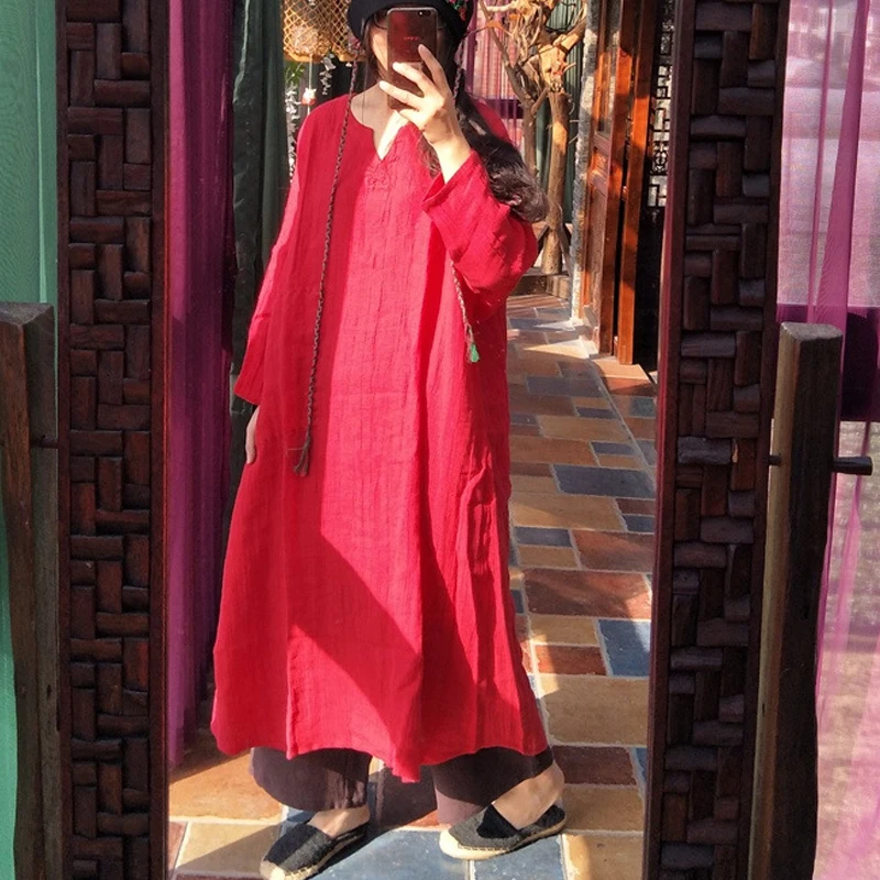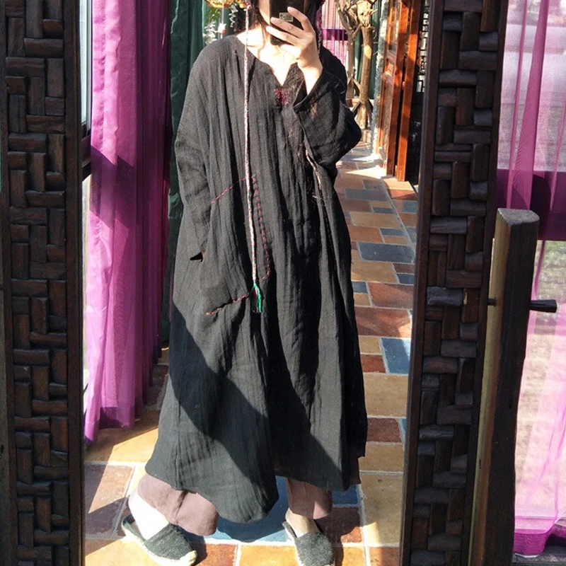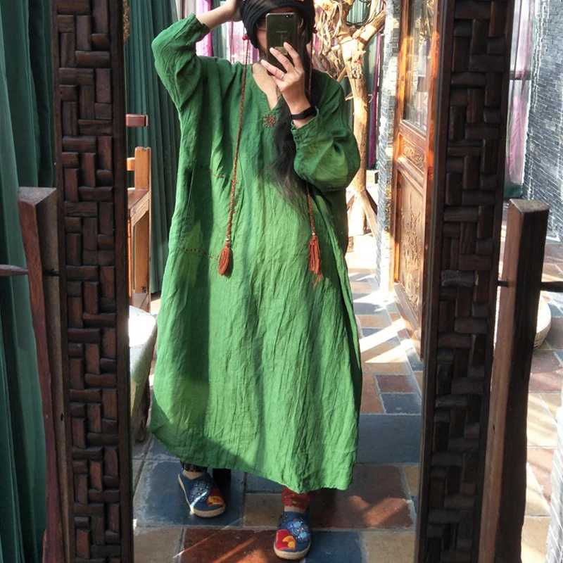 . (Zniżka 0%) Skup Wiosna 2019 nowa sukienka czysty len ręcznie haftowane chiński luźne plus size szata sukienka w stylu vintage Najtaniej Ceny.