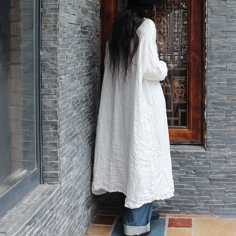 Special Offer Wiosna 2019 nowa sukienka czysty len ręcznie haftowane chiński luźne plus size szata sukienka w stylu vintage Discount 0% Today!