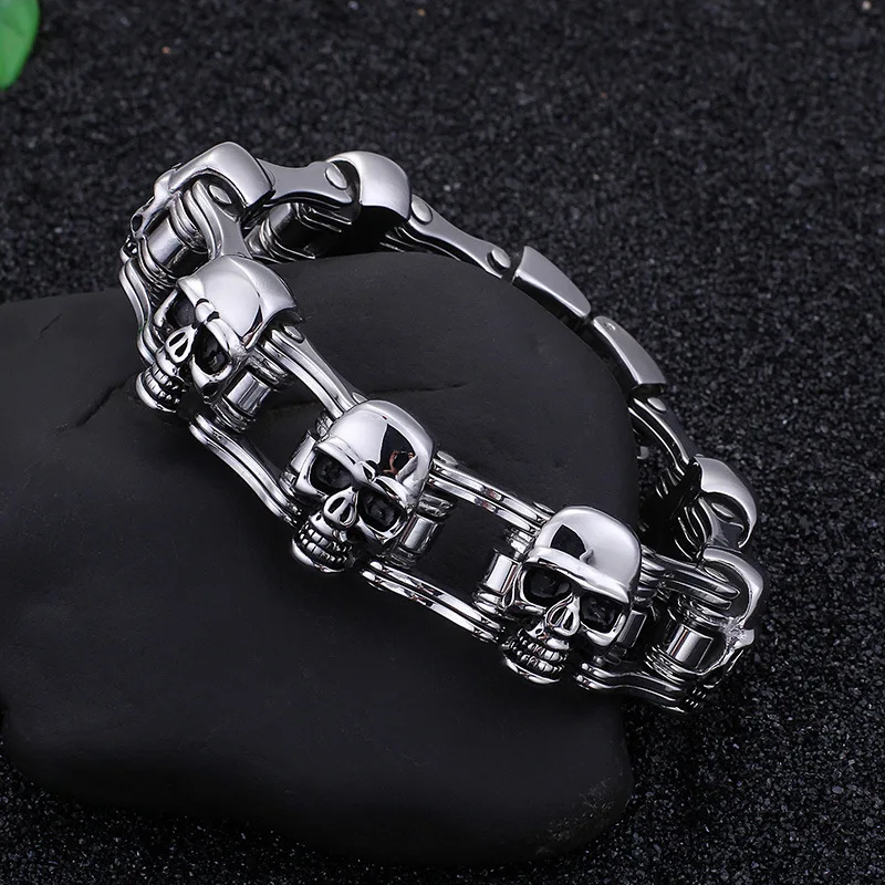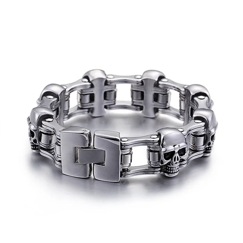 . (Zniżka 16%) Skup Mężczyzn ze stali nierdzewnej ze stali nierdzewnej rower z pałąkiem na głowę gorąca nowa męska titanium stali nierdzewnej czaszka motocykl bransoletka Najtaniej Cena.