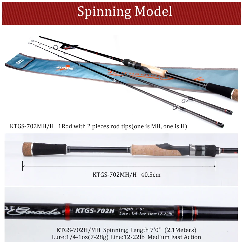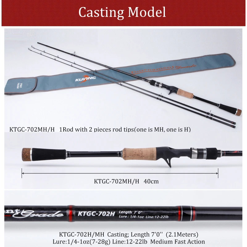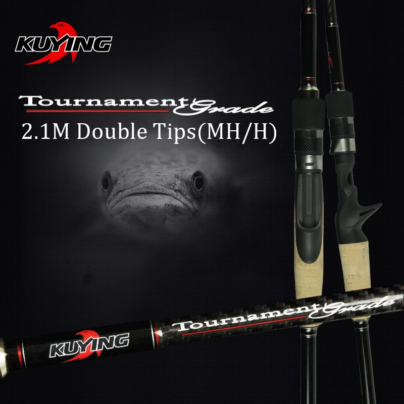 . (Zniżka 25%) Tanie KUYING 2.1m turniej podwójne końcówki MH H twarde odlewanie przynęta spinningowa wędka z włókna węglowego trzciny kij średni szybki 7 28g Ceny.