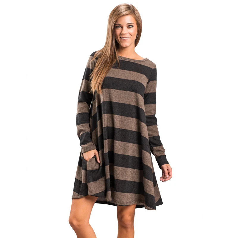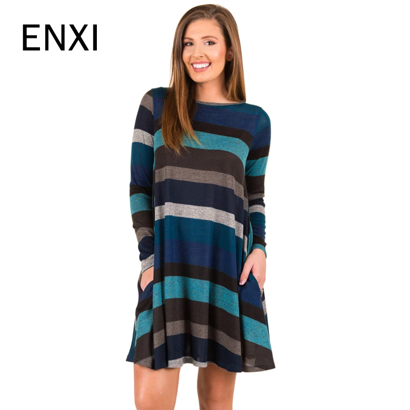 . (Zniżka 30%) Skup Zimowe sukienki w paski z długim rękawem jesień macierzyństwo z dzianiny ubrania w ciąży sukienki dla kobiet w ciąży Najtaniej Cena.