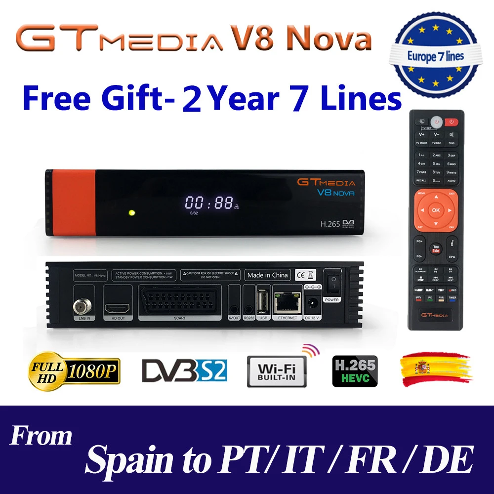 Special Offer Receptor odbiornik satelitarny Gtmedia V8 nova HD 1080P z 2 latami europa 7 linii wbudowane wi fi H.265 DVB S2 Box hiszpania tv Discount 30% Today!