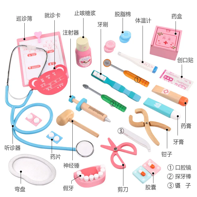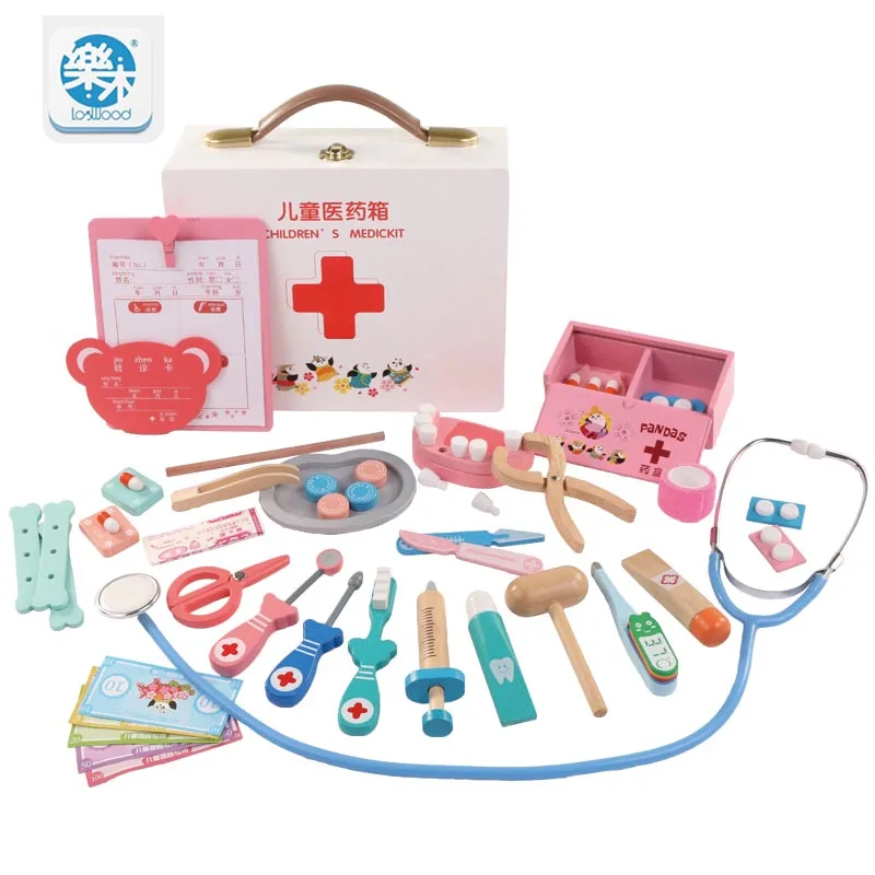 . (Zniżka 35%) Skup Tanie Dla dzieci zabawkowy zestaw lekarski zestaw wtrysku narzędzie drewniane symulacja prawdziwe życie apteczka dziewczyna zabawki prezenty domu stetoskop Cena.