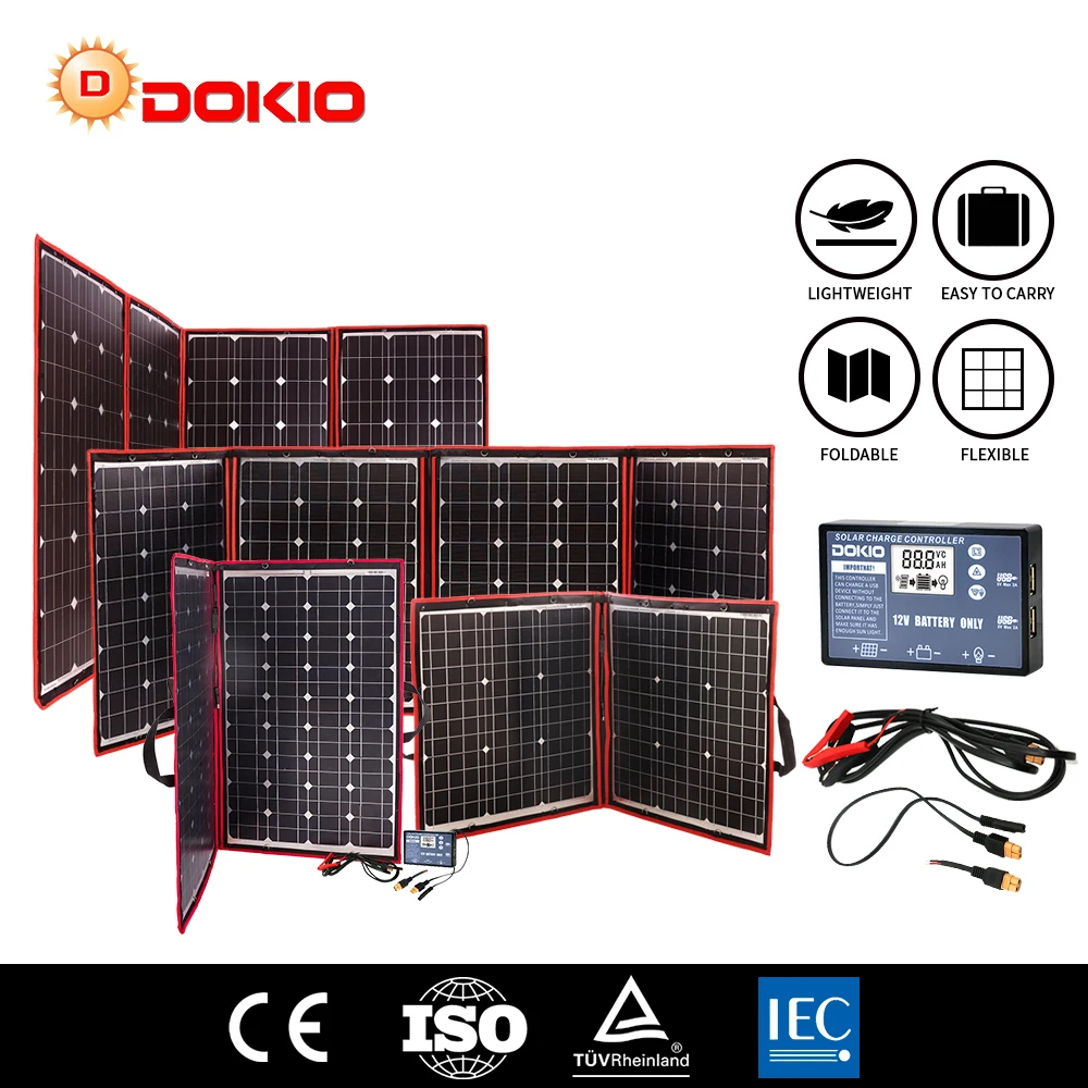 Special Offer Dokio elastyczny składany Panel słoneczny wysoka wydajność podróże i telefon i łódź przenośny 12V 80w 100w 150w 200w 300w zestaw paneli słonecznych Discount 40% Today!