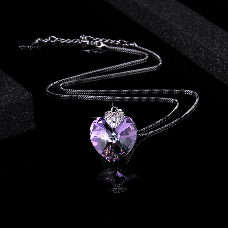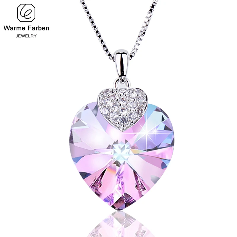 . (Zniżka 40%) Tanie Warben Farben ozdobiony kryształy swarovskiego serca wisiorek z ametystem naszyjnik modna biżuteria typu choker naszyjnik Collares Ceny.