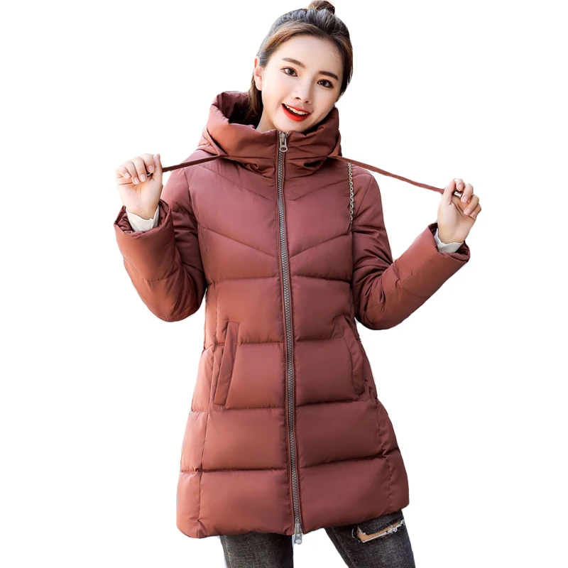 . (Zniżka 41%) Skup Tanie Stojak kołnierz z kapturem kobiety kurtka zimowa cienka bawełna wyściełana zimowa kurtki damskie długie damskie płaszcze parki Chaqueta Mujer Cena.