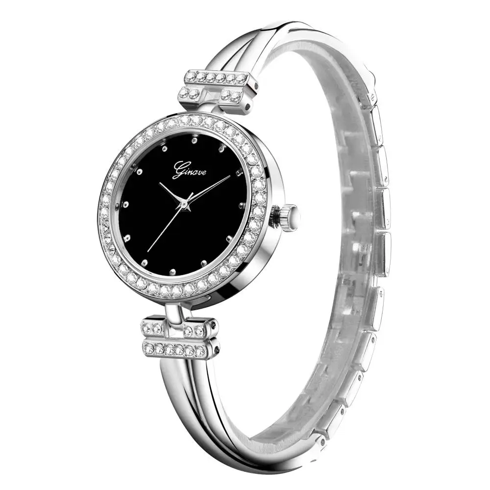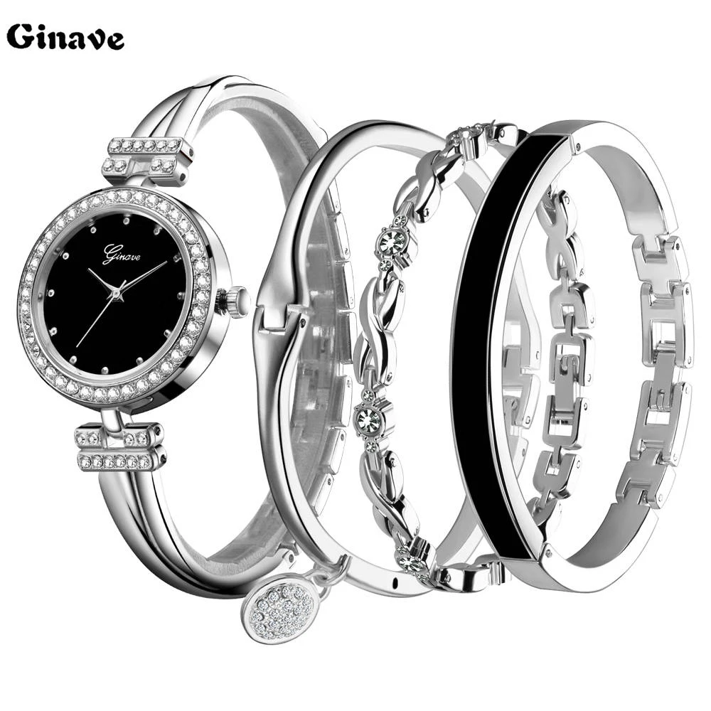 . (Zniżka 45%) Skup Nowe mody eleganckie kobiety zegarki srebro kryształ bransoletka 4 sztuk zestaw luksusowe złota stal panie kwarcowe zegarki na rękę prezenty Najtaniej Cena.
