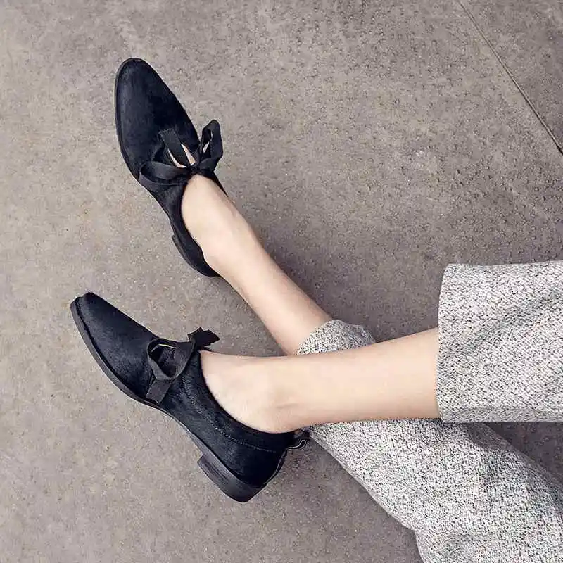 . (Zniżka 51%) Tanie Krazing pot horsehair bowtie płytka urocza koronka up party wiosenne buty ślubne sweety okrągłe toe damskie grube niskie czółenka L01 Cena.