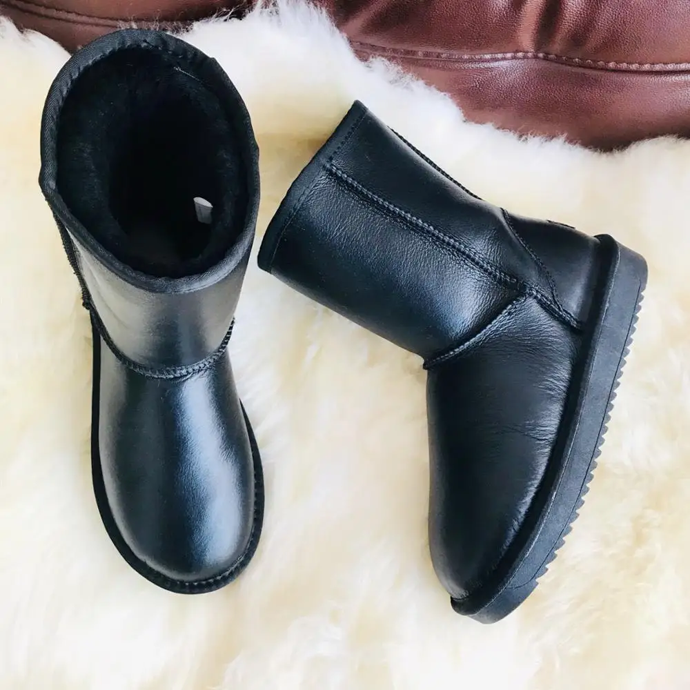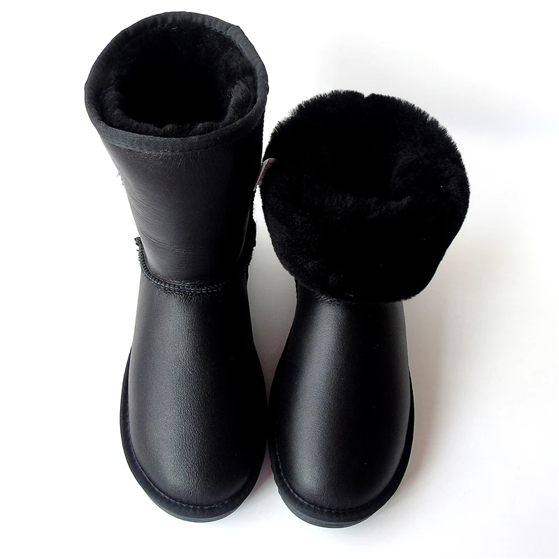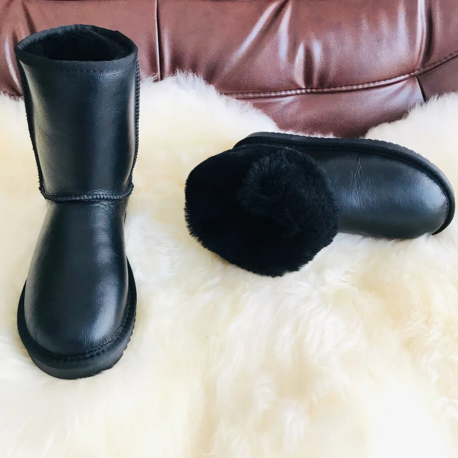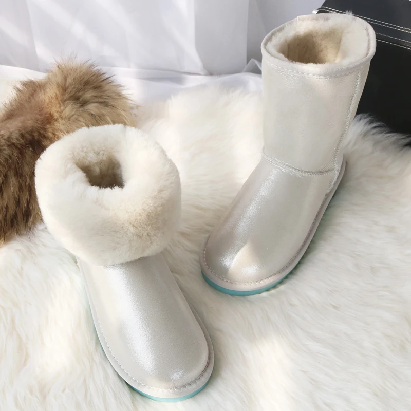 . (Zniżka 53%) Skup Tanie Buty kożuchowe marki kobiety naturalna wełna zimowe owce buty śniegowe futrzane do połowy łydki buty ocieplane ciepłe oryginalne skórzane buty damskie Cena.