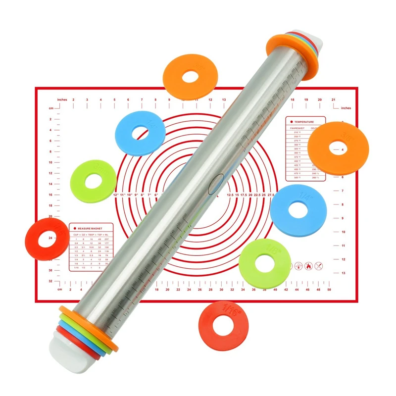 . (Zniżka 55%) Tanie LMETJMA 17 cal ze stali nierdzewnej z regulacją wałek do ciasta z mata do ciasta wałek do ciasta z 4 wymiennymi regulowana grubość pierścienie Cena.
