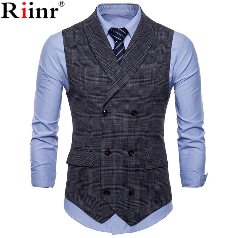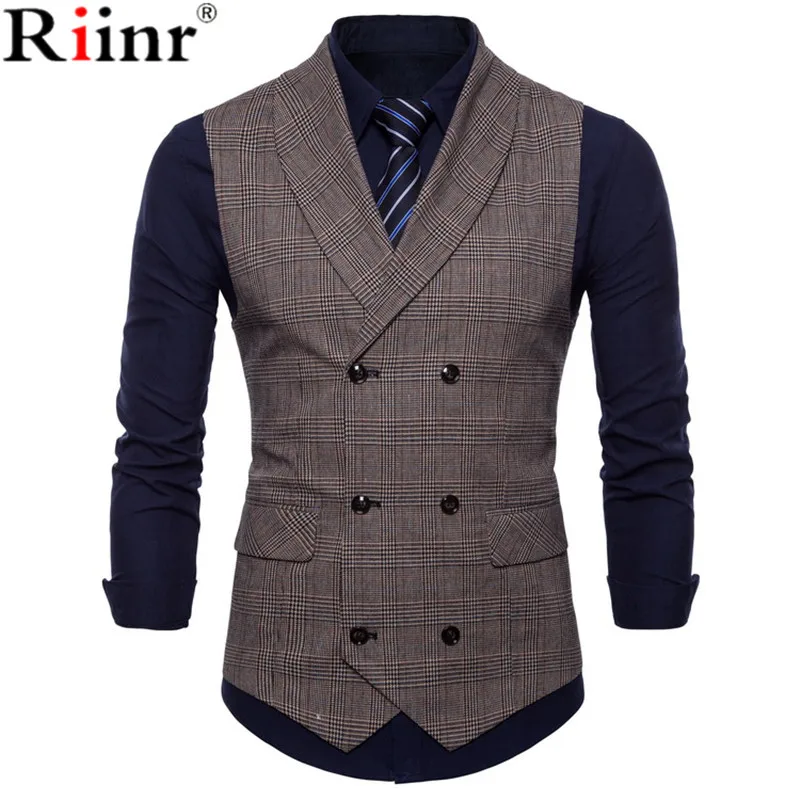 Special Offer Riinr 2019 garnitur markowy kamizelka męska kurtka bez rękawów beżowy szary brązowy Vintage tweedowa kamizelka moda wiosna jesień Plus rozmiar kamizelka Discount 58% Today!