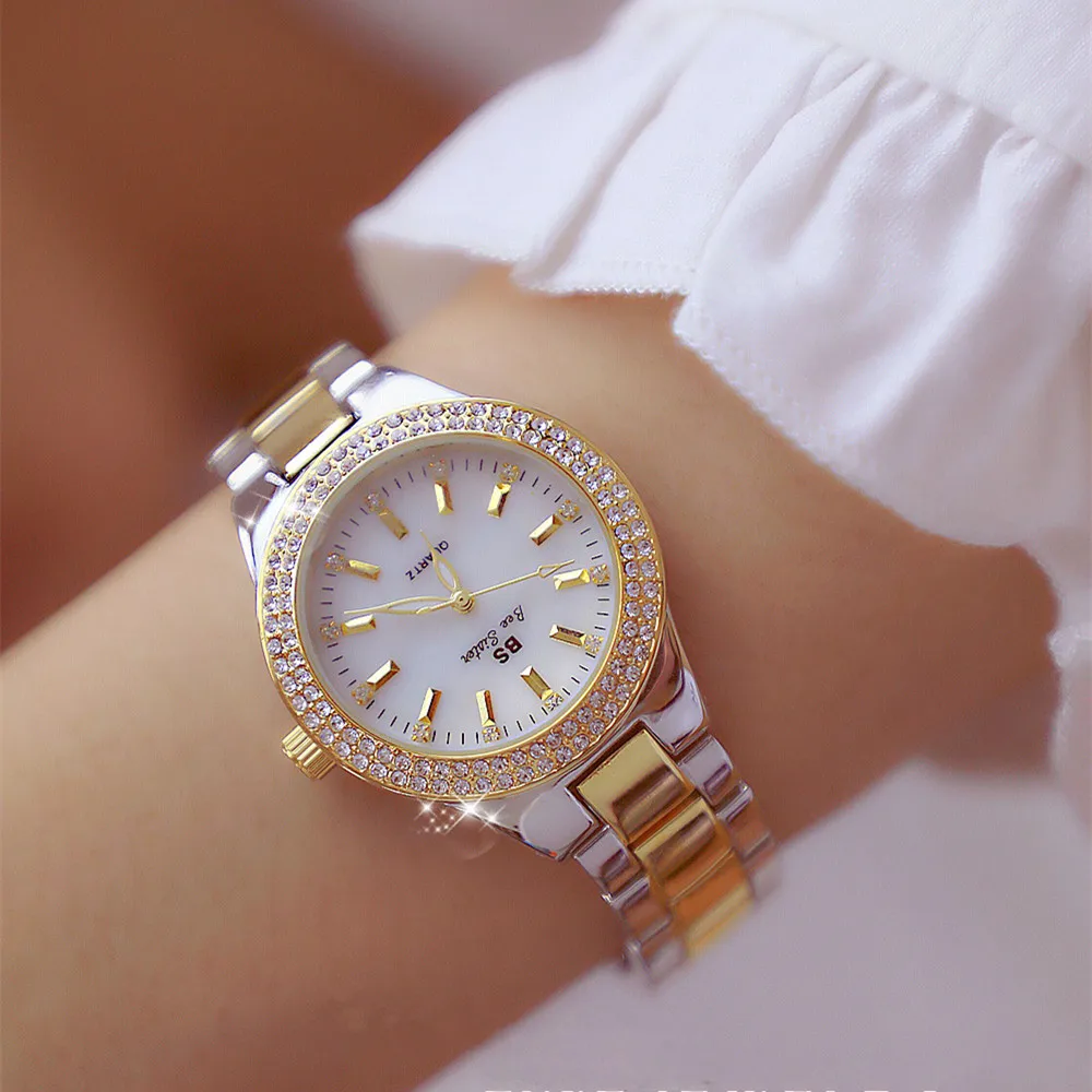 . (Zniżka 62%) Skup 2019 luksusowej marki lady zegarek kryształowy kobiety ubierają zegarek mody wzrosła złote zegarki kwarcowe kobiet ze stali nierdzewnej na rękę Najtaniej Cena.