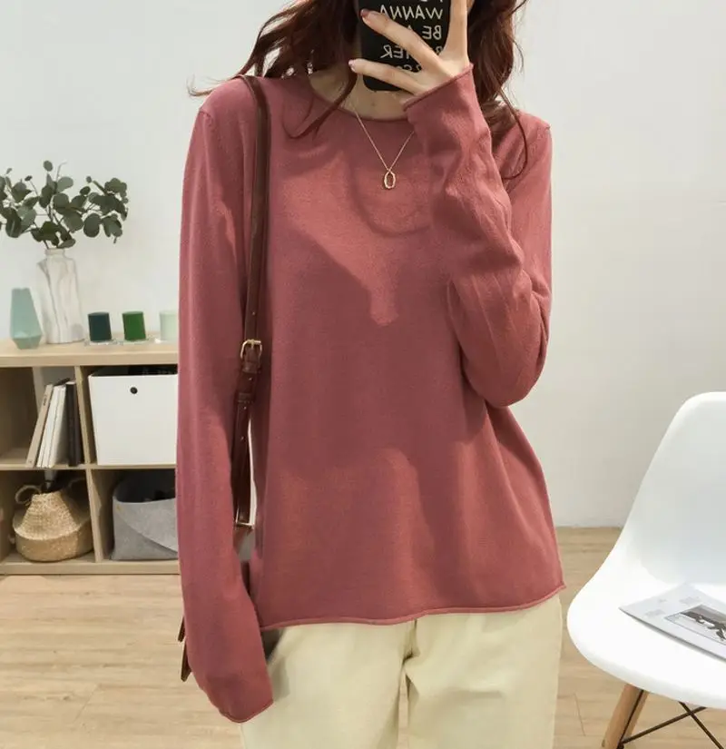 Special Offer Kaszmirowy sweter damski O neck wełniany sweter z długim rękawem slim, dziany solidny kolor koszule damskie wydłużony sweter Discount 82% Today!