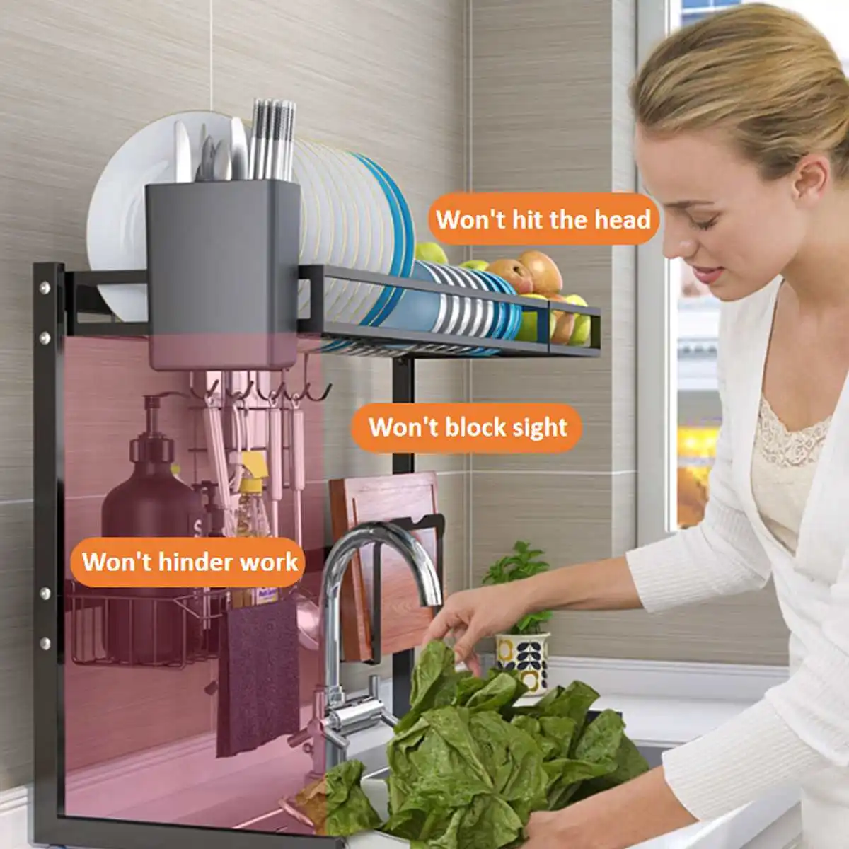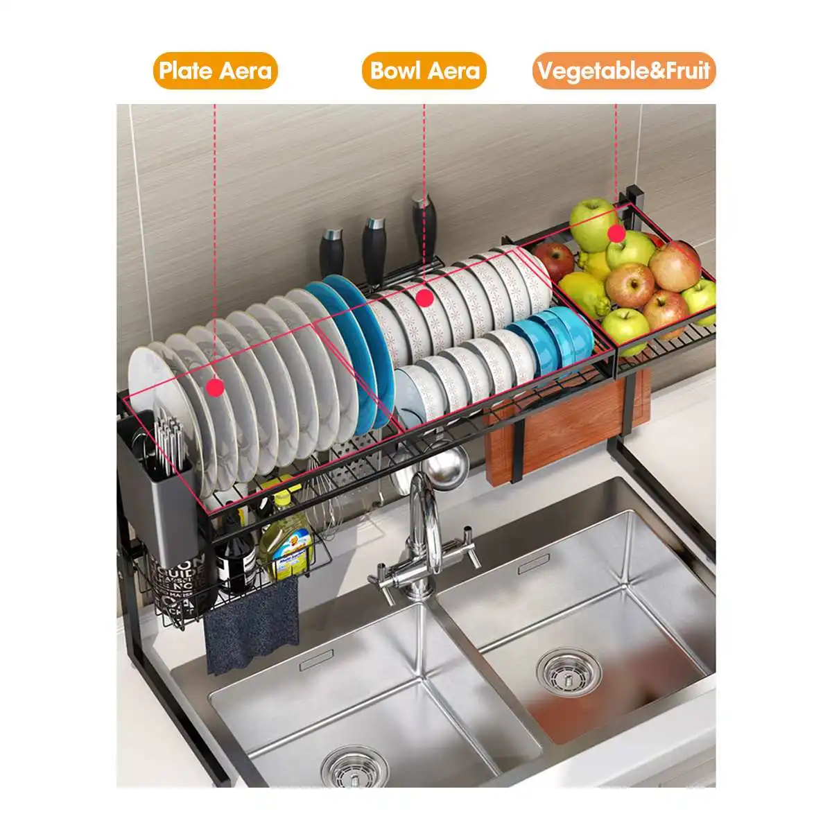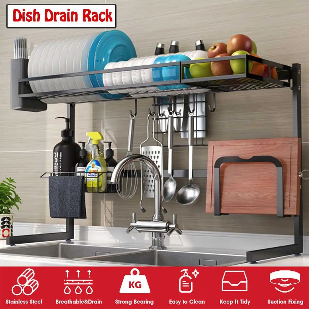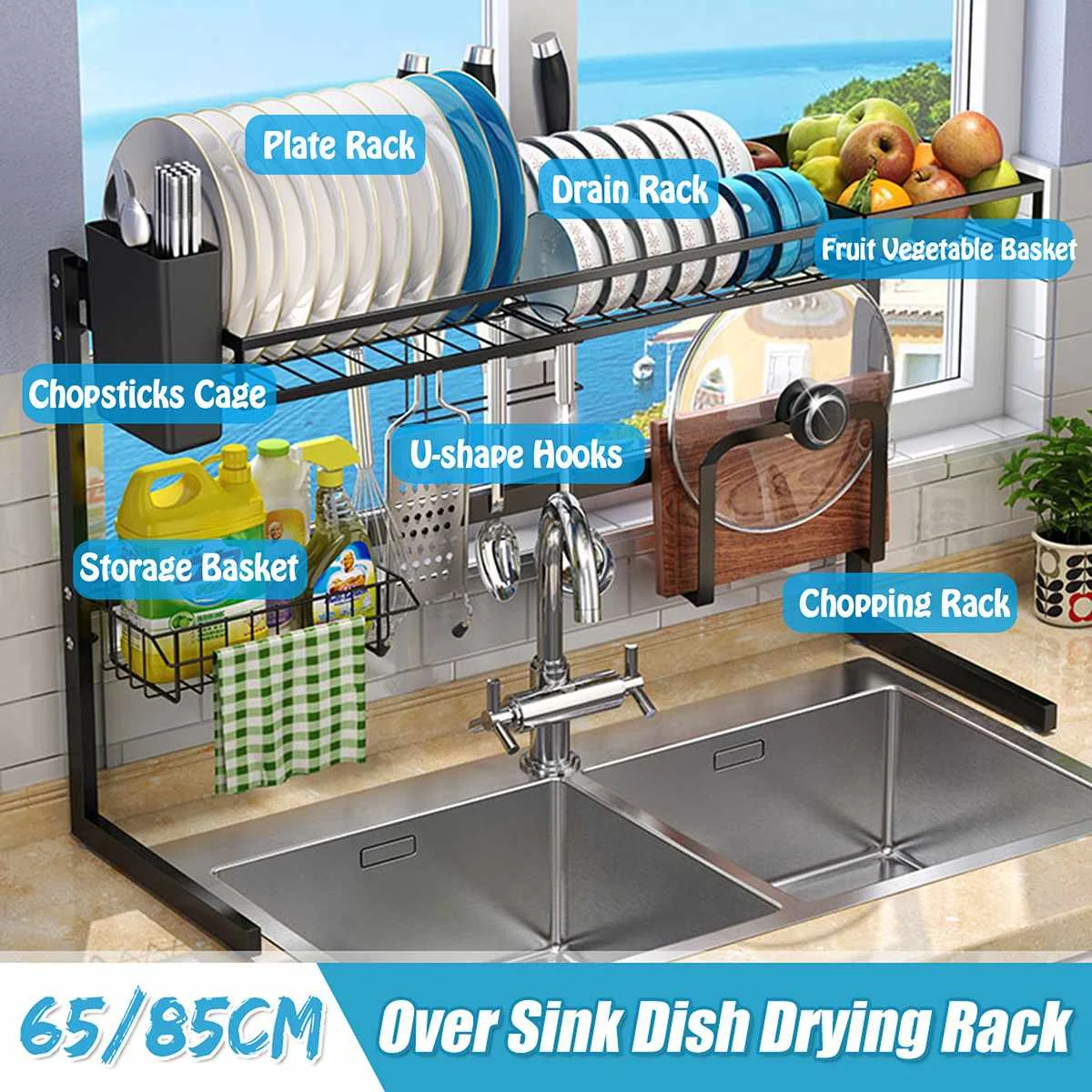 . (Zniżka 0%) Skup Tanie 65 85cm czarny Organizer do kuchni do przechowywania półka ze stali nierdzewnej ponad miska danie suchy uchwyt na półkę naczynia do przechowywania organizator Cena.