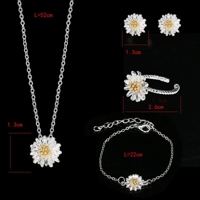. (Zniżka 0%) Tanie TSHOU132 zestaw biżuterii damskiej proste stop stokrotka naszyjnik kwiatowy stadniny kolczyki bransoletka pierścień zestaw Cena.