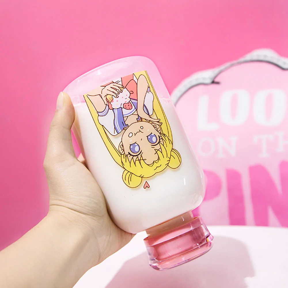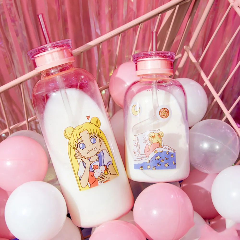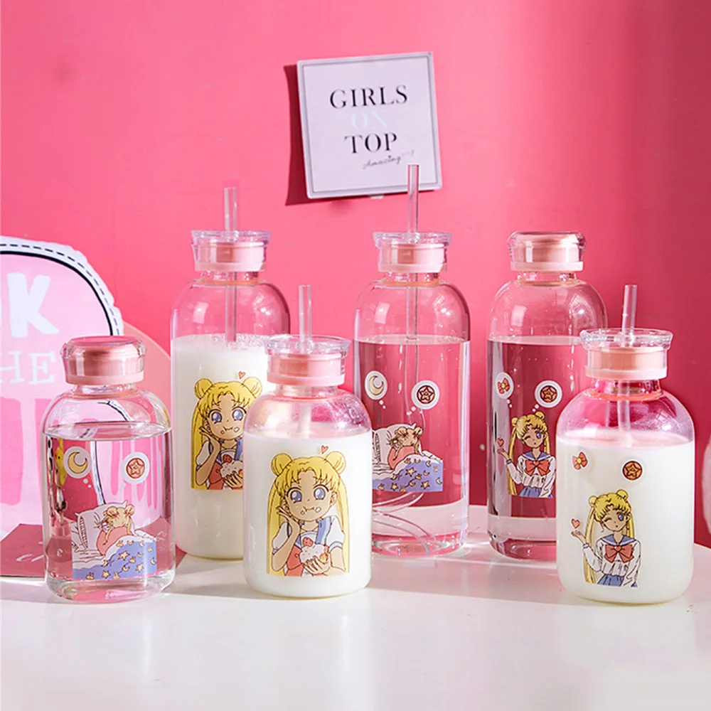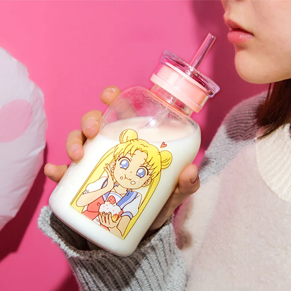 . (Zniżka 19%) Skup Japońska ładna dziewczyna Cartoon butelka Sippy przeźroczysta szklana butelka Student o dużej pojemności szczelne butelki do napojów bez rękawów Najtaniej Cena.