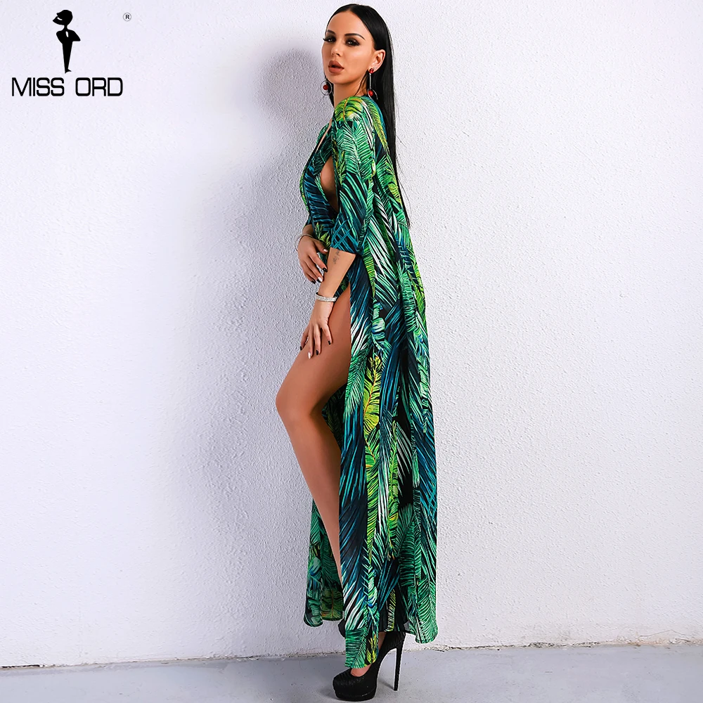 Special Offer Missord 2019 letnie kombinezony plażowe Maxi Boho zielone głębokie V Playsuit drukuj czeski długi rękaw seksowny komplet z długimi spodniami FT9111 Discount 20% Today!