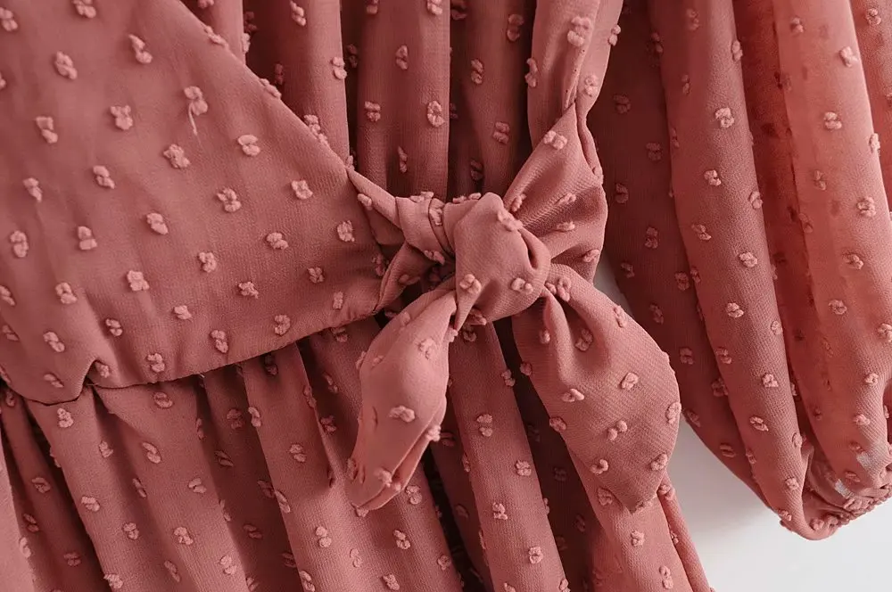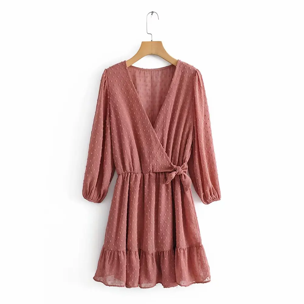 Special Offer Nowych kobiet elegancki krzyż v neck łuk związany szyfonowa vestido hem ruffles mini sukienka jesień panie elastyczny pas kimono sukienki DS2893 Discount 24% Today!