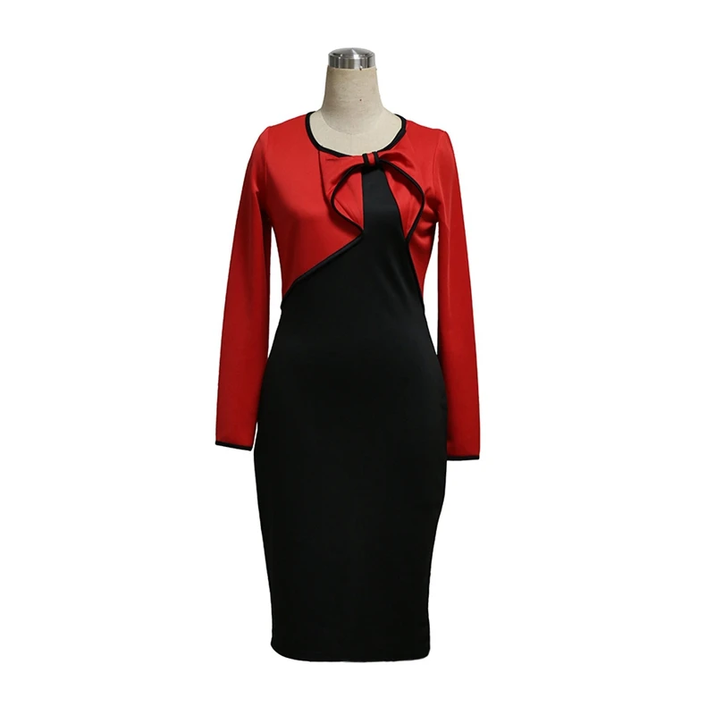 Special Offer Kobiety eleganckie z falbanką, patchworkowy Peplum Vintage praca biuro Business Party ołówkowa typu bodycon formalny strój z długim rękawem Discount 35% Today!