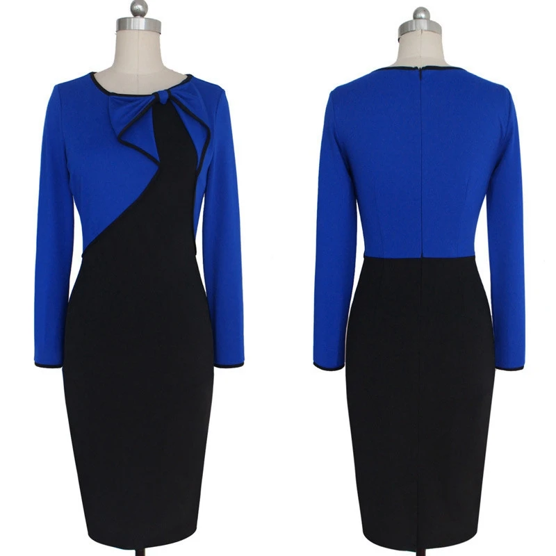 . (Zniżka 35%) Tanie Kobiety eleganckie z falbanką, patchworkowy Peplum Vintage praca biuro Business Party ołówkowa typu bodycon formalny strój z długim rękawem Ceny.