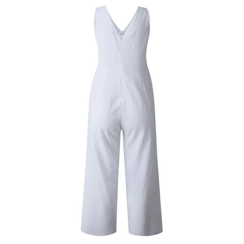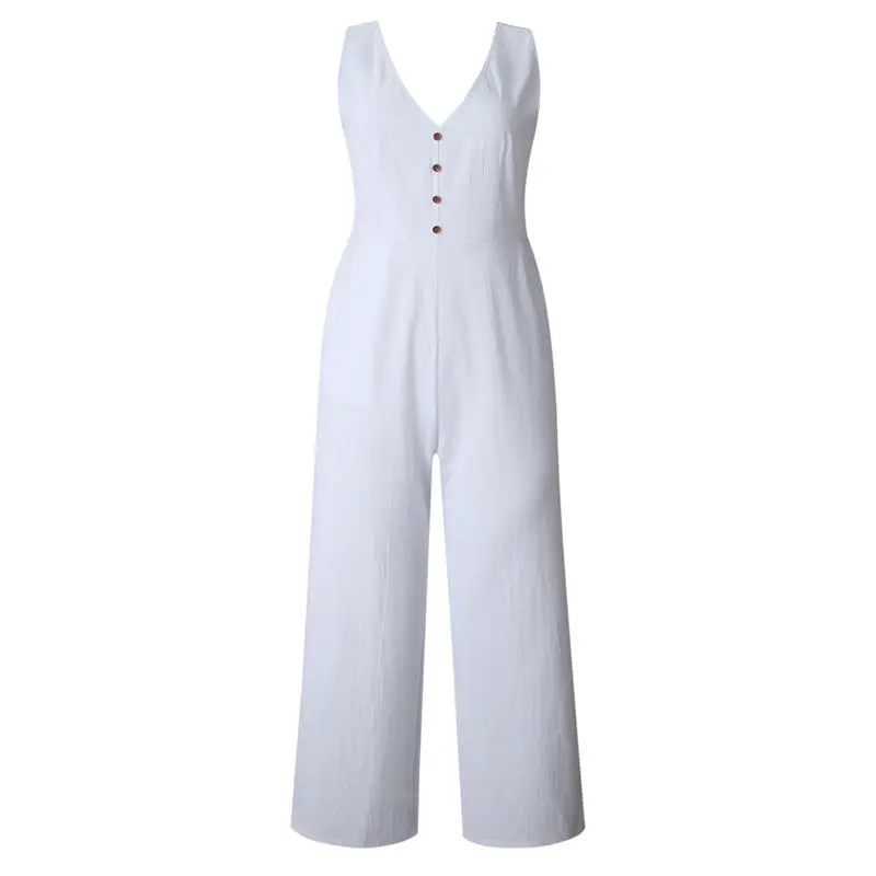 Special Offer Letnia luźna, bawełniana kieszeń na guzik głęboki dekolt w szpic kombinezon z szerokimi nogawkami dla kobiet 2019 kombinezon damski z paskami Discount 35% Today!