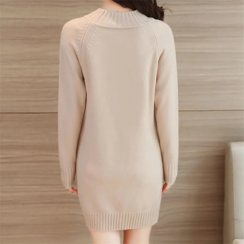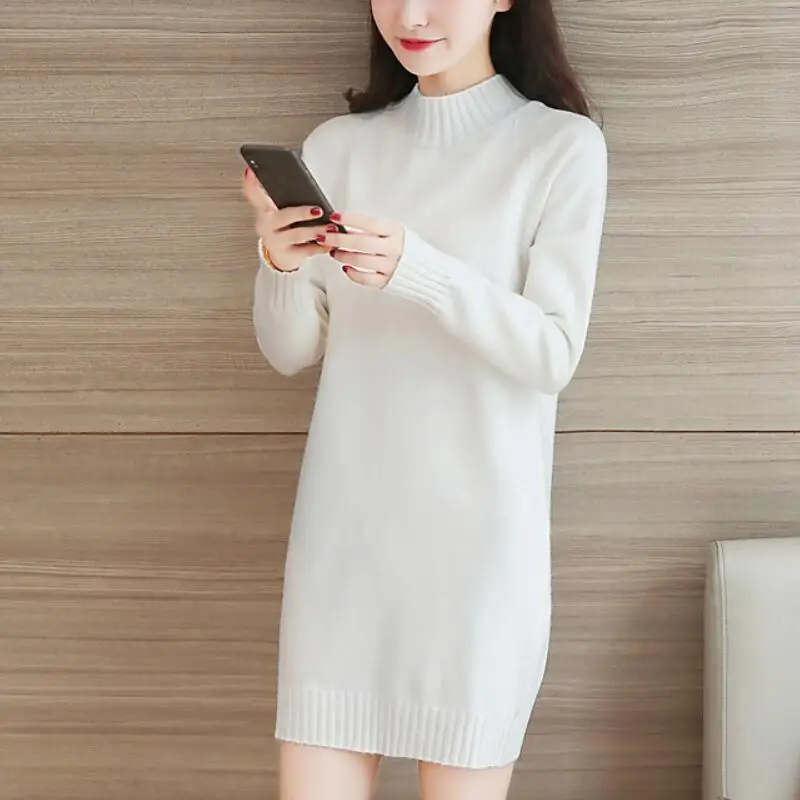 Special Offer 2019 jesień kobiet długi sweter kobiet jednolity kolor luźne swetry z dzianiny sweter najniższy koszule damskie Discount 36% Today!