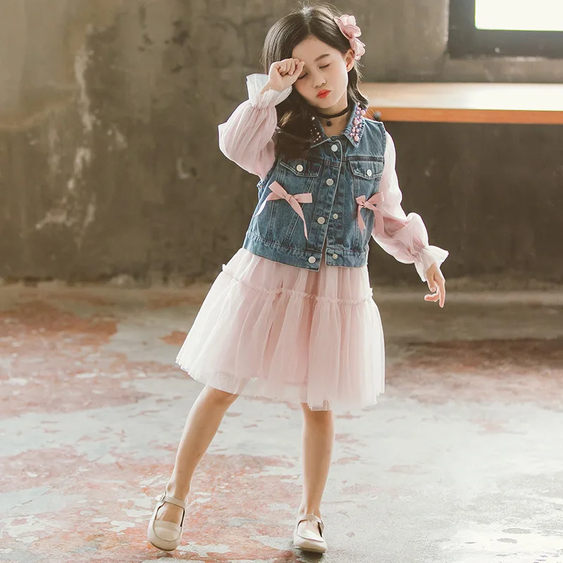 Special Offer Kowbojskie kurtki dziewczęce sukienka nowa wiosna długie rękawy różowa sukienka koronkowa sukienki dziecięce dla dziewczynek jesienna odzież Party kostium księżniczki Discount 38% Today!