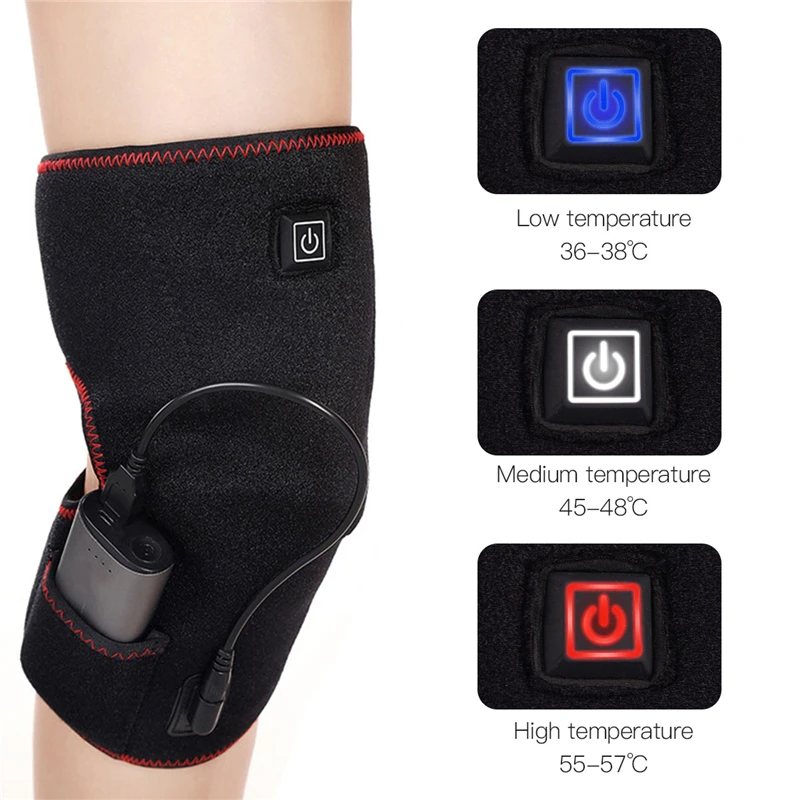 . (Zniżka 38%) Tanie USB podgrzewana ciepła podkładka na kolano zawijany ochraniacz wzmacniający ulga w bólu akumulator kolanowy wsparcie Brace masażer elektryczny regulowana temperatura Ceny.