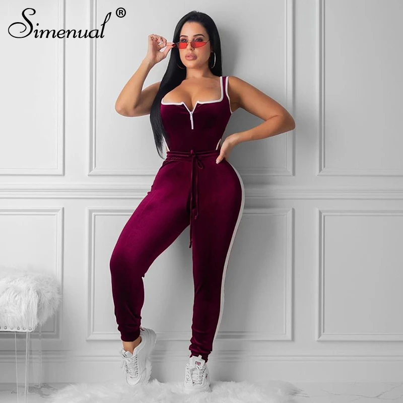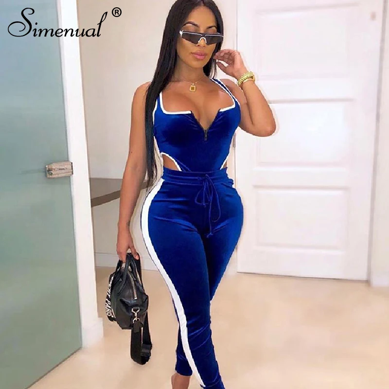 Special Offer Simenual aksamitna Sexy V Neck kobiety pasujący zestaw moda 2019 bez rękawów Athleisure dwuczęściowe stroje gorące body i spodnie zestawy Discount 47% Today!
