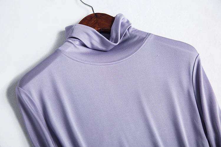 Special Offer Kobiety T koszula 100% prawdziwe jedwabiu z golfem z długim rękawem najniższy koszulka 2018 jesień zima koszulka Plus rozmiar elastan top Discount 48% Today!