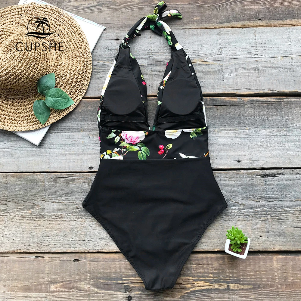 Special Offer CUPSHE z nadrukiem kwiatowym motyl marszczący jednoczęściowy strój kąpielowy kobiety Halter głęboki dekolt bez pleców seksowne body Monokinis stroje kąpielowe Discount 50% Today!