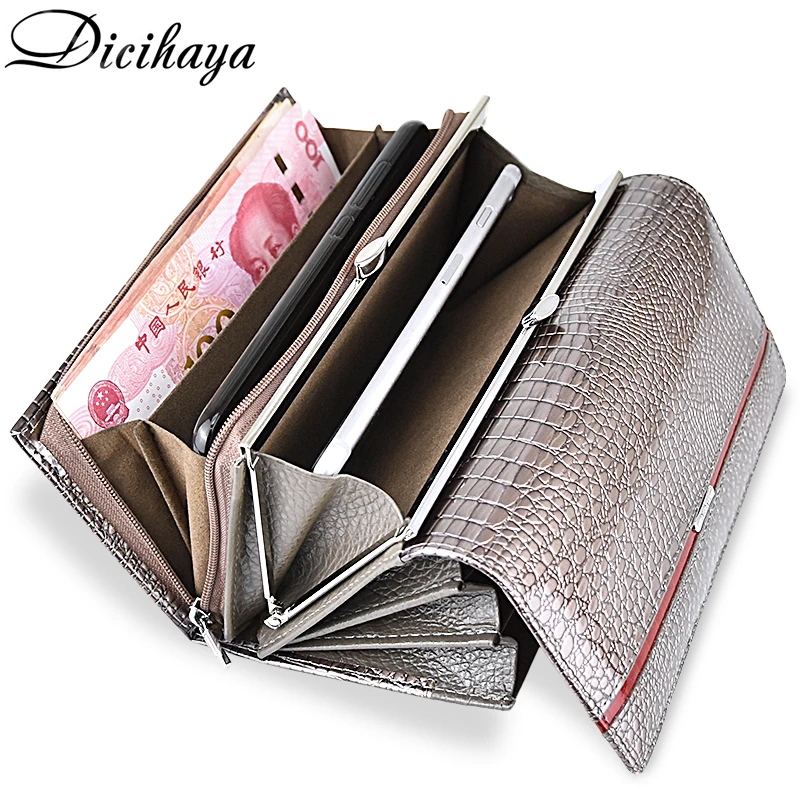Special Offer DICIHAYA marki prawdziwej skóry kobiet portfele krokodyla druku długo portfel z zamkiem i klamerką panie Clutch Bag torebka kobiet luksusowe 2019 Discount 53% Today!