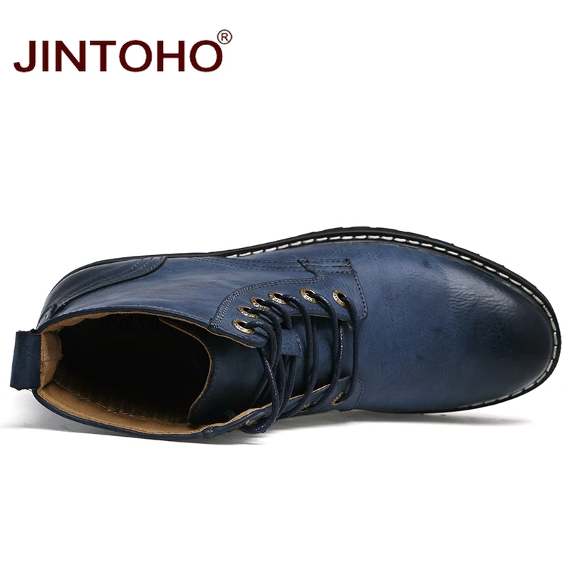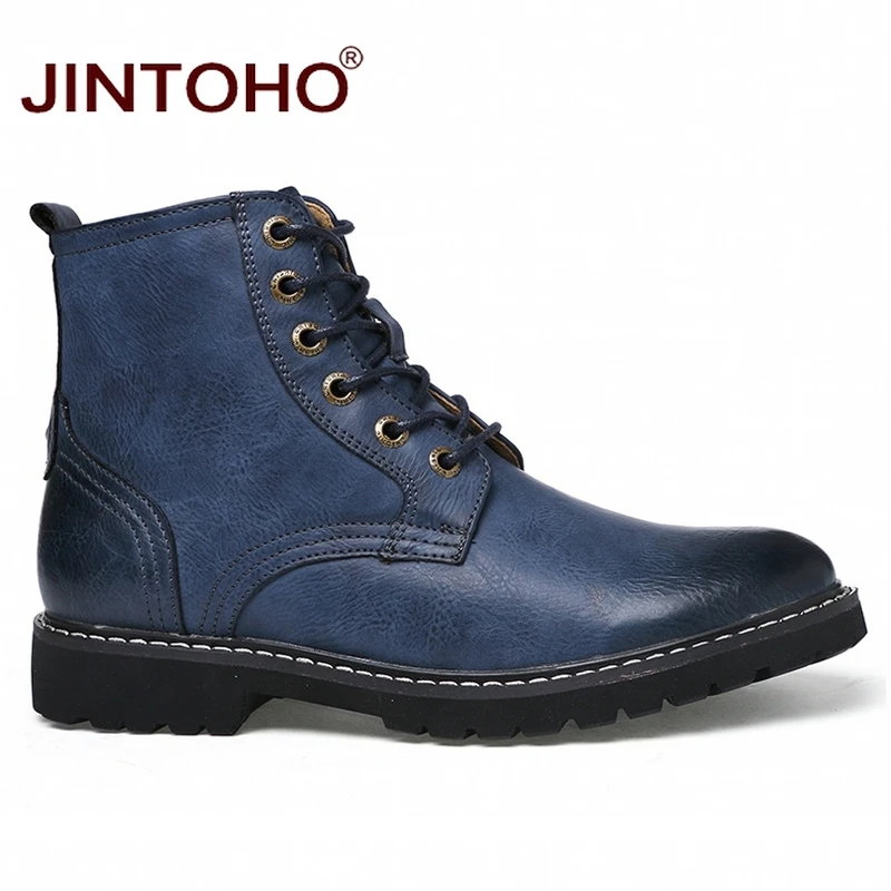 . (Zniżka 53%) Tanie JINTOHO skórzane męskie zimowe buty modne męskie zimowe buty szpiczasty nosek w połowie buty ze skórki cielęcej dla mężczyzn męskie skórzane buty Cena.